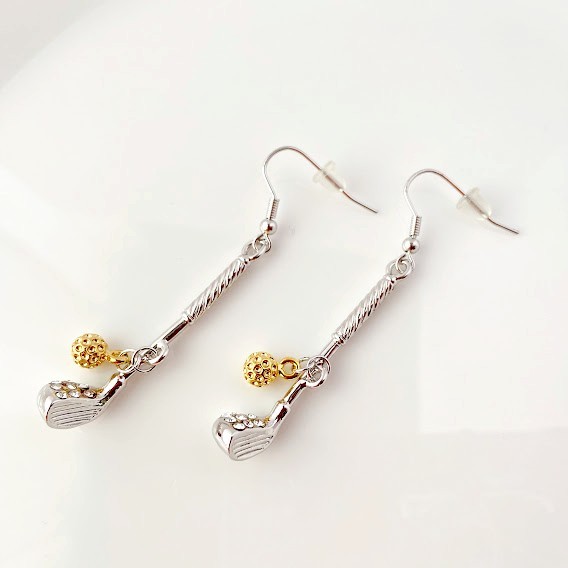 ピアス イヤリング ゴルフ ボール チャーム スワロフスキー 綺麗 華やか(素材・・・真鍮ロジウム・ゴールドメッキ、スワロフスキークリスタルサイズ・・・ゴルフクラブ:縦4.4cm ゴルフボール:約0.5cm) 可愛く便利な一品です。