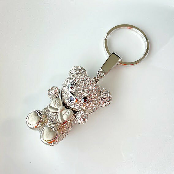 キーホルダー くま チャーム スワロフスキー 綺麗 華やか(本体4.3×3.0cm全体の長さ9.0cm) キーホルダー くま クマ 熊 くまさん バッグ アクセサリー レディース 女性 ジュエリー キラキラ おしゃれ 人気 大人 プレゼント ギフト お出かけ 【ワンポイントに最適・キーホルダー】 立体感のあるかわいいくまさんのキーホルダーです。