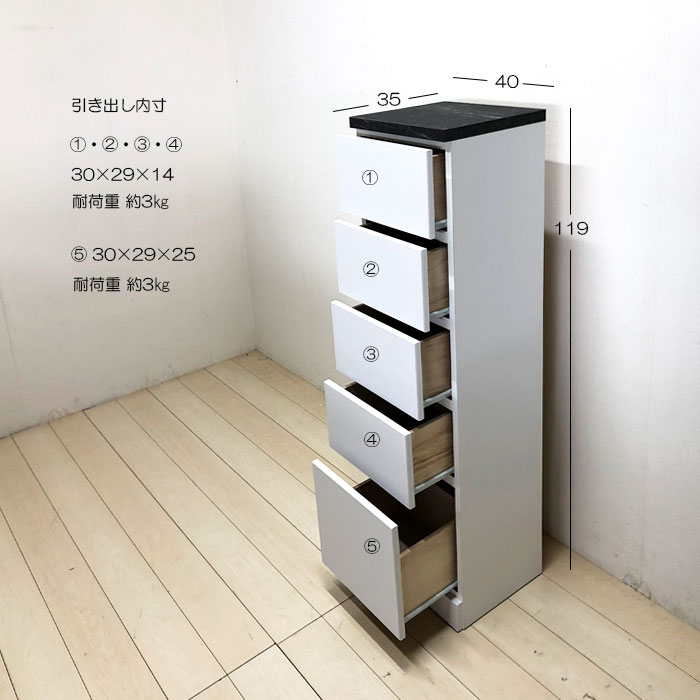 ランドリー サニタリー 洗面所 脱衣所 すき間 隙間 収納 多目的 チェスト幅40 5段 ホワイト 白 大理石調 高級 完成 洗剤 タオル 下着 ランジェリー 大川 家具 国産 【送料無料】(北海道・東北・沖縄・離島は別途見積)
