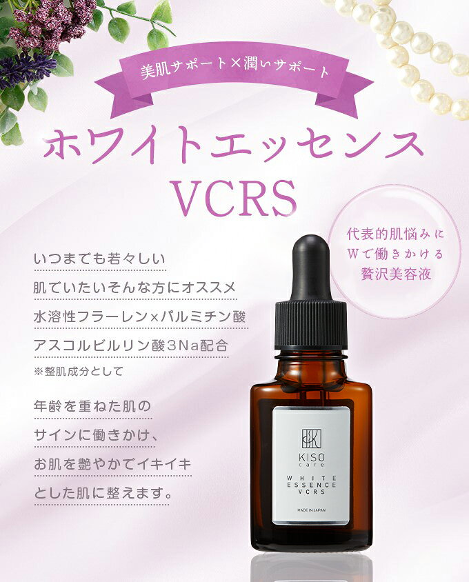 販売名 キソ ホワイトエッセンス VCRS 内容量 お試しサイズ 5ml 使用目安 開封後3ヵ月 使用方法 お化粧水の後に3.4滴手に取りご利用下さい。