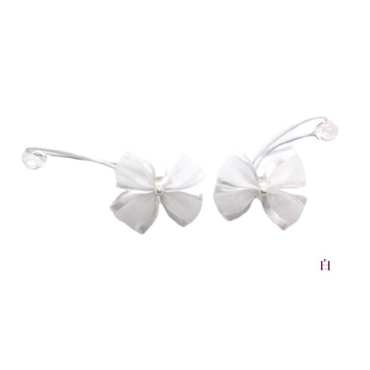 パール付オーガンジー リボン ヘアゴム 小 (2コ) | ホワイト ピンク リボンゴム キッズ ヘアアクセサリー 髪飾り 子供 こども 入園式 卒園式 入学式 卒業式 フォーマル 上品 清楚 お出かけ 可愛い おしゃれ シンプル スーツ 女の子 に 全品 送料無料 実施中