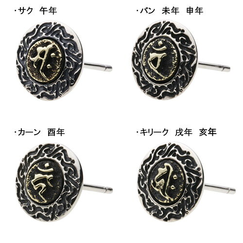 ピアス イヤリング シルバー925 シルバーピアス シルバーアクセサリー アクセサリー 戌 いぬ 亥 いのしし 酉 とり 羊 申 午 辰 巳 卯 丑 寅 子 年 守護梵字 梵字 梵字 お守り 御守り 厄除け サンスクリット語 マントラ 曼荼羅 和柄 和風 護符 メンズ