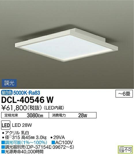 【最安値挑戦中!最大25倍】大光電機(DAIKO) DCL-40546W シーリング LED内蔵 調光 調光器別売 昼白色 ホワイト 〜6畳 [∽]